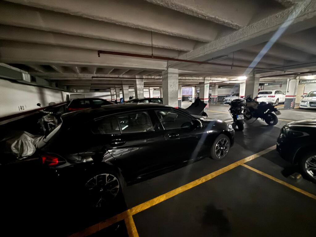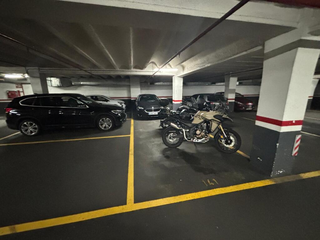 Plaza CUÁDRUPLE (2 coches + 2 motos) con entrada por rampa y puerta automática en Travessera de Les Corts 320. Vigilante y ascensor.
