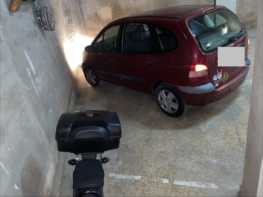 Plaza de garaje que coge un coche y moto, abstenerse todoterrenos y suvs grandes altura de entrada limitada.